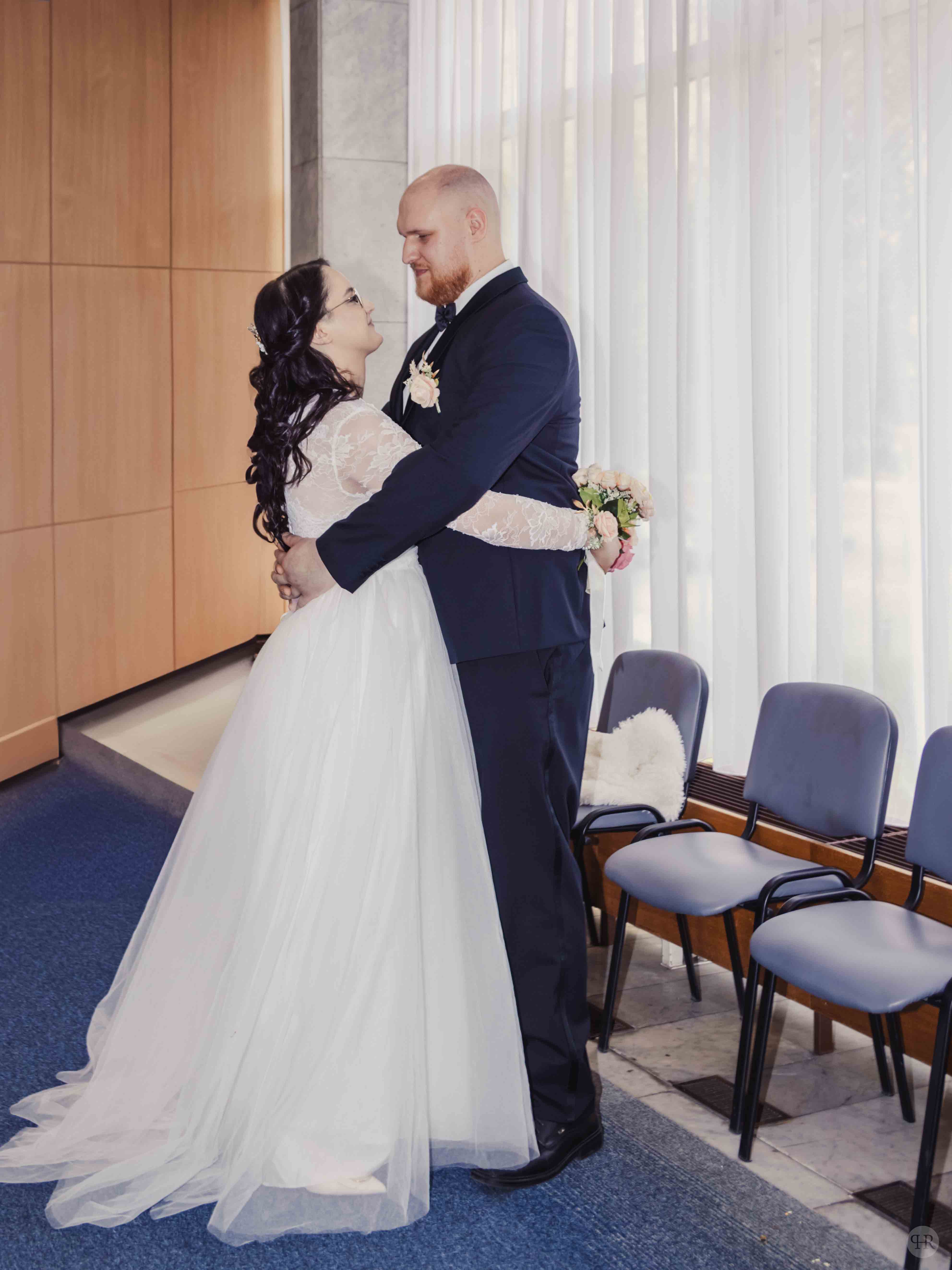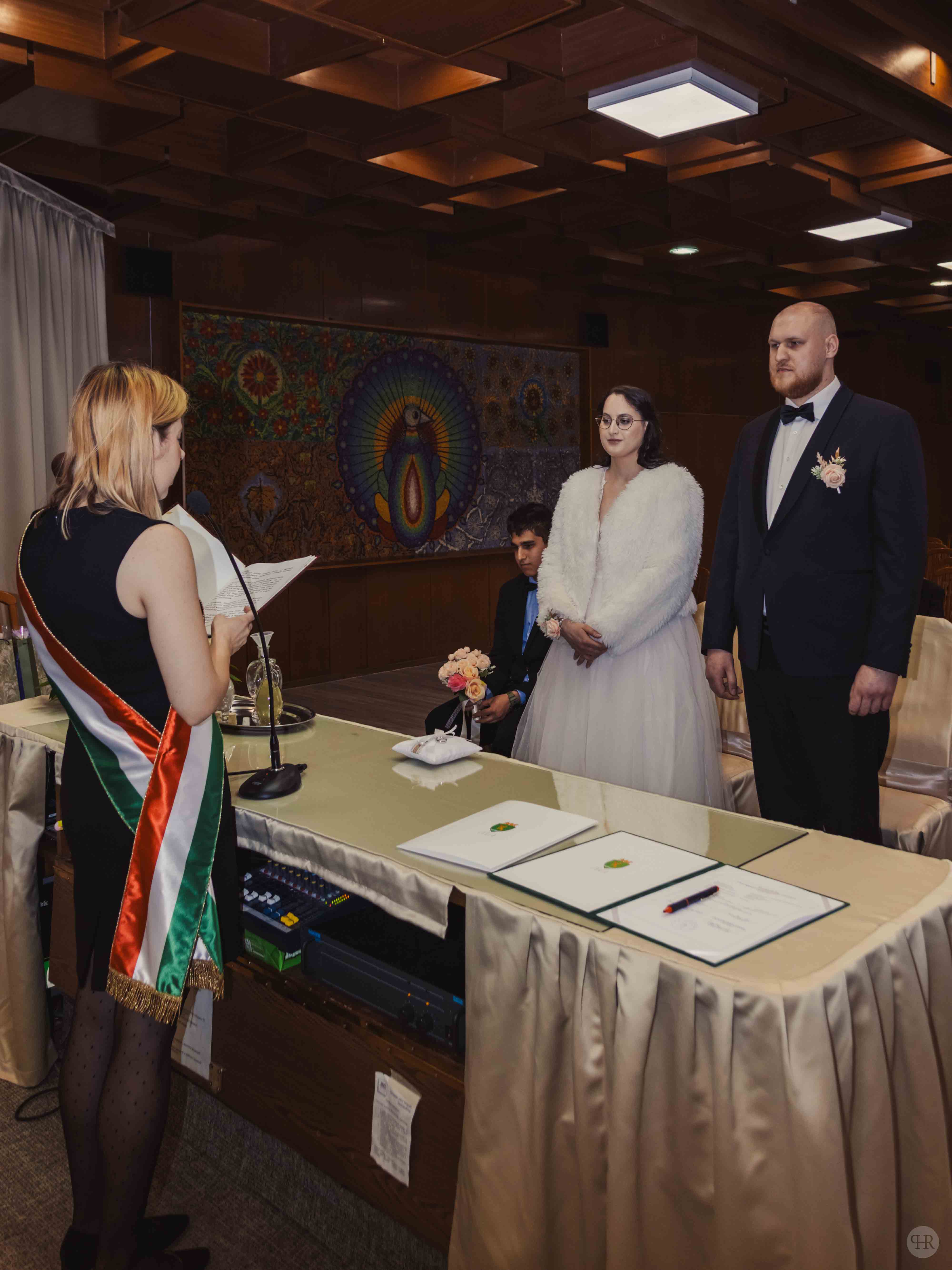 A szertartásra Zugló egyik hangulatos házasságkötő termében került sor, ahol a családias légkör tökéletes keretet adott a nagy pillanathoz. A pár közti mély kapcsolat szinte tapintható volt – nemcsak a szavakban, hanem minden gesztusban és pillantásban ott volt az egymás iránti szeretet és bizalom. Ez a bensőséges légkör nemcsak a jelenlévőket érintette meg, hanem öröm volt képeken is visszaadni.